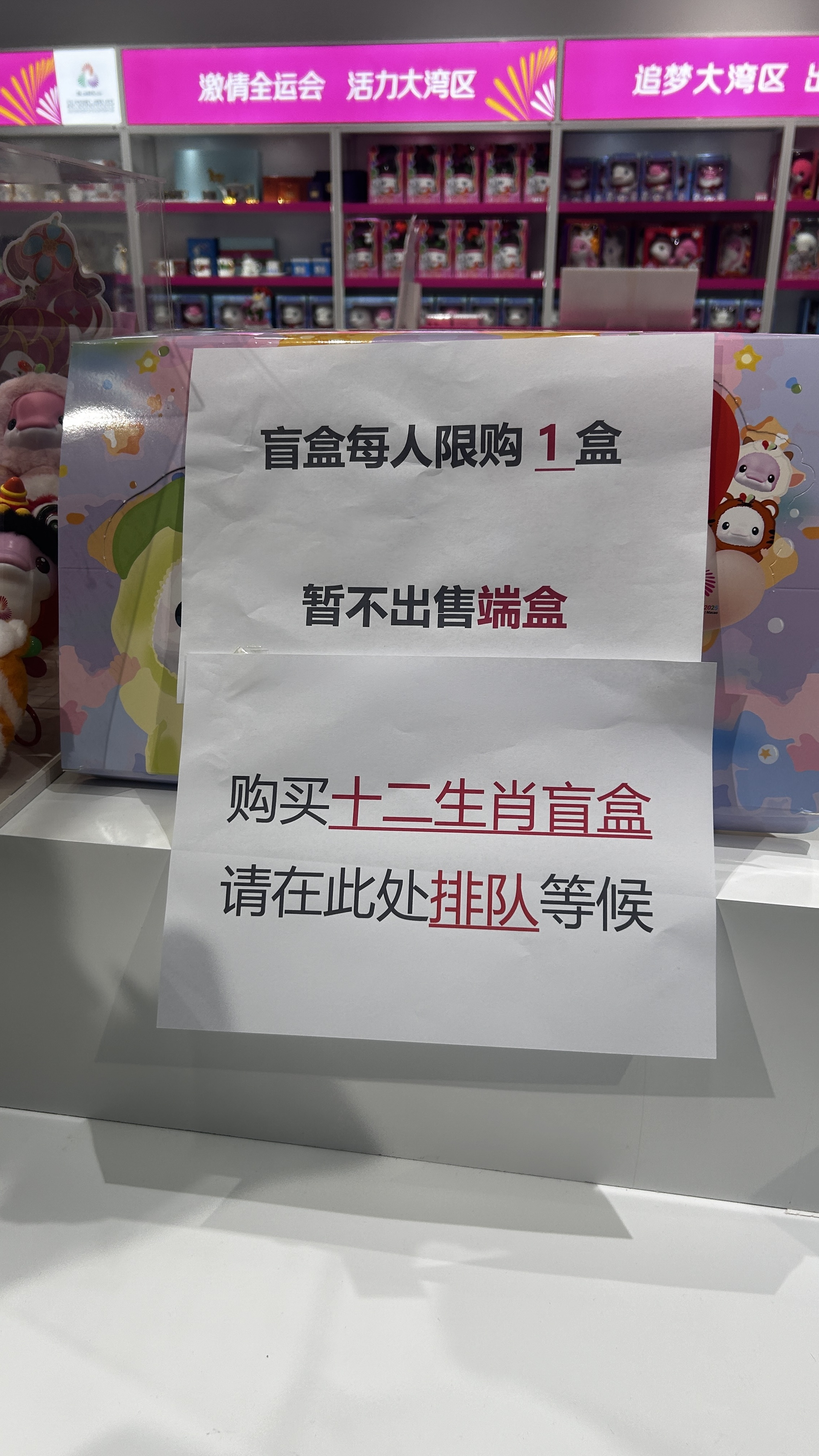 问起大家的目标,答案相当明确——吉祥物盲盒的十二生肖和醒狮系列!也正因如此,“竞争”格外激烈,有的消费者更是“四刷”现场,誓要买到心仪盲盒。